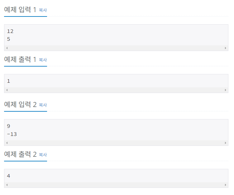 첫 줄에는 정수 x가 주어진다. (−1000 ≤ x ≤ 1000; x ≠ 0) 다음 줄에는 정수 y가 주어진다. (−1000 ≤ y ≤ 1000; y ≠ 0)