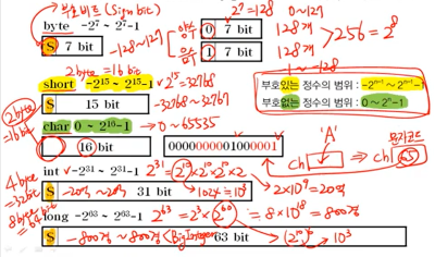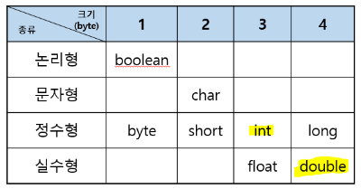int 타입보다 짧은 short 타입은 2byte, int 타입보다 긴 long 타입은 8byte 이다.